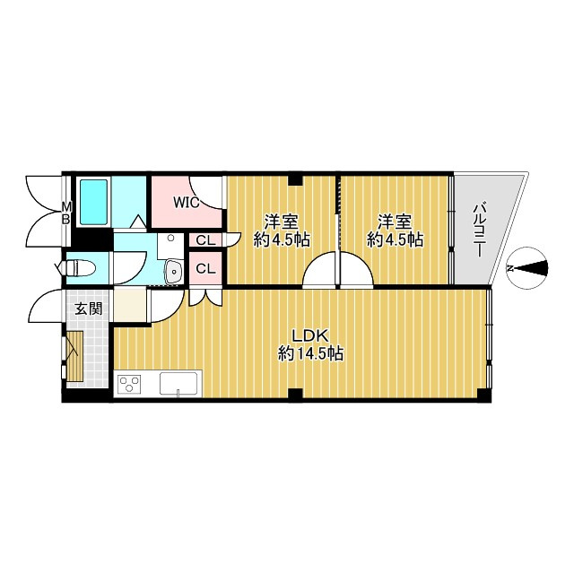 【居間・リビング】約14.5帖のリビングは家具配置のしやすい間取りとなっております。