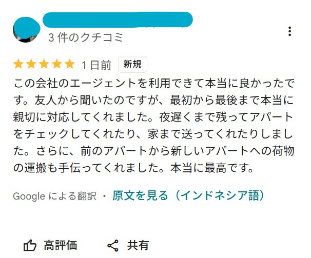 enak banget pake agen dari perusahaan ini. aku tau dari temen, dia bener bener support dari awal sampe akhir. bahkan cek lokasi apartmen aja bisa sampe malem banget di temenin dan sampe dianter pulang juga. terus barang barang dari apartment lama juga dibantu bawain ke apartment baru. pokoknya terbest lah